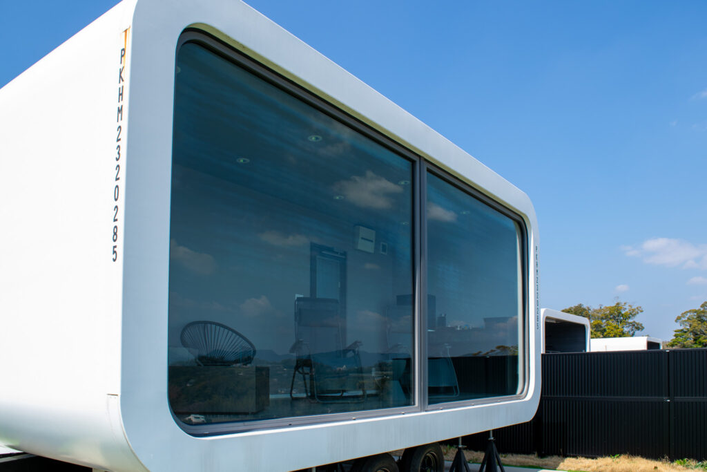 片方のトレーラーハウスにサウナ・シャワー・トイレ、