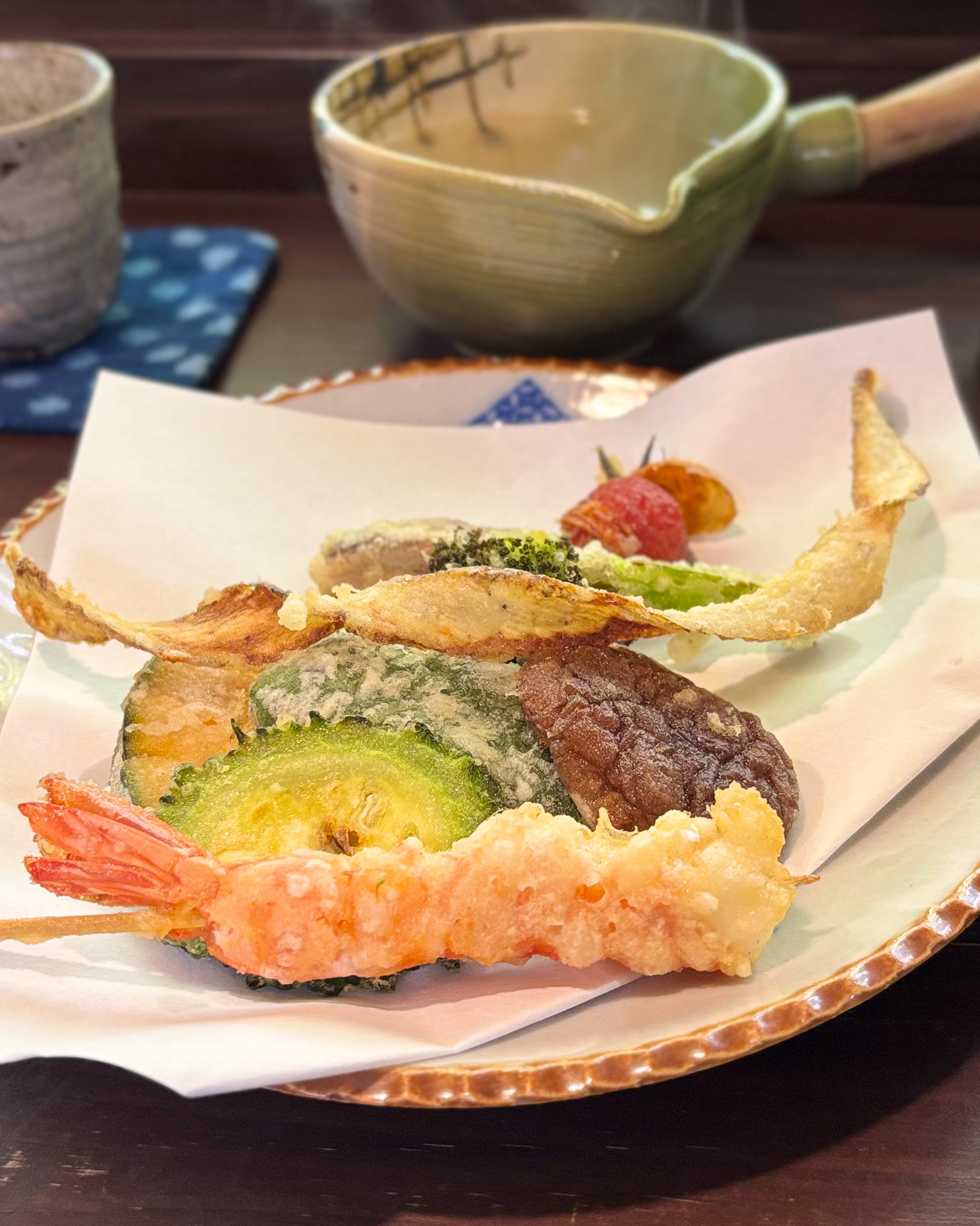 天ぷらは海老のほかに、 ピーマン、しいたけ、